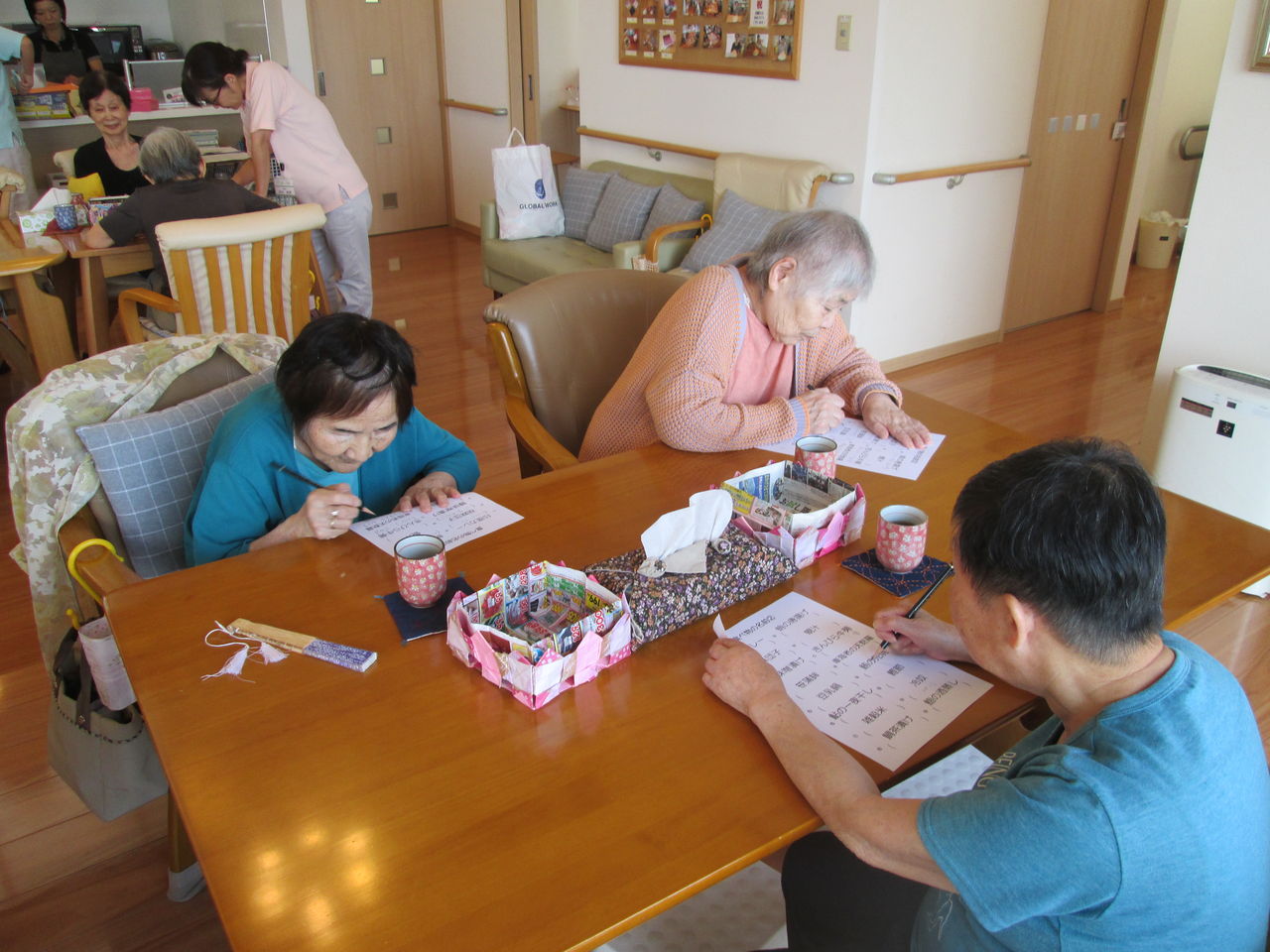 2019年10月25日 / 最終更新日時 : 2019年10月25日 dsiyashinokaze NEW 8月の活動 8月の暑い時期は、室内での運動や活動をメインに行いました!午前中はストレッチ体操で体をしっかりと動かし、午後からは音楽に合わせたリズム運動を行っています。その後は脳リハプリントで頭を使う時間を設け、趣味活動では様々な作品作りや歌(カラオケ)、ゲーム等の中からお好きな活動に参加をしていただいています!8月の暑い日も癒しの風のフロアには、皆さんの元気な姿が見られていました! コメントを残す コメントをキャンセルメールアドレスが公開されることはありません。 ※ が付いている欄は必須項目ですコメント ※ 名前 ※ メール ※ サイト
